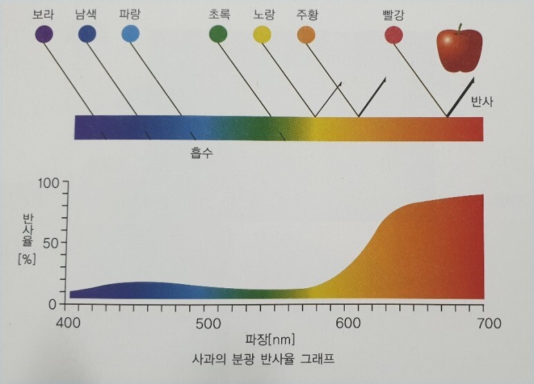 즉, 물질은 모든 빛을 반사, 흡수, 투과하는 비율이 다르기 때문에 다양한 색으로 나타나 보이는 것이죠.