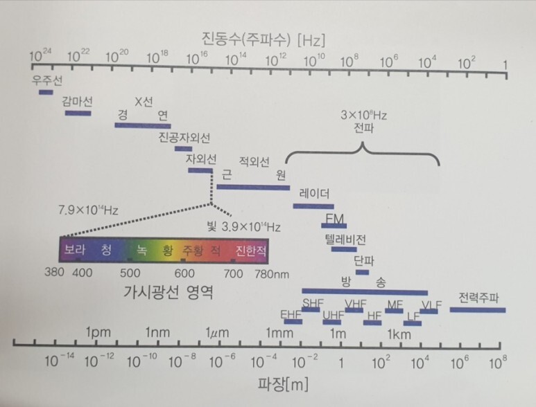 위의 사진 보시면 아시겠지만, 전체 파장 중에 가시광선이 차지하는 번위는 아주 좁습니다..