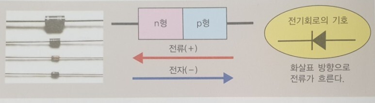 전류는 전자의 반대 방향으로만 흐를 수 있도록 해 둔 것이 다이오드라고 합니다.
